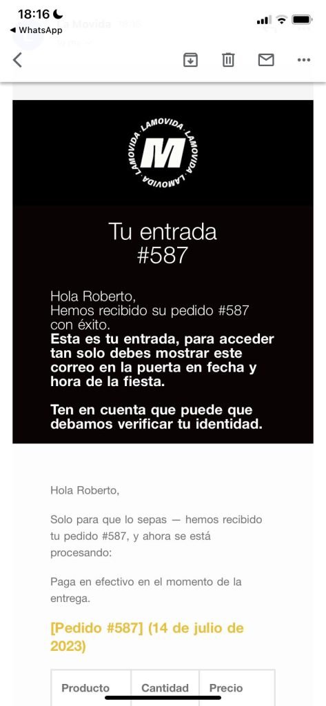 Puedes encontrarla haciendo clic en el enlace a continuación, que te llevará a la web de La Movida, discoteca en la Playa de Gandía. A continuación te muestro imágenes de su web, su tienda online y cómo se recibe una entrada en el email. Finalmente tienes una imagen donde se muestra la página al completo.